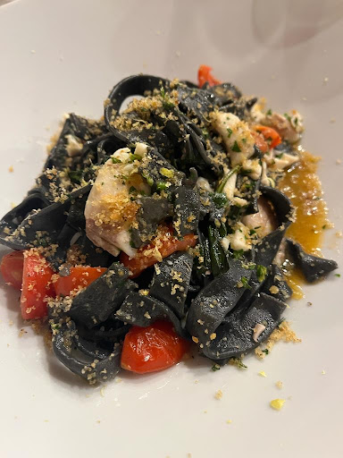Ispirati dal nome di questo locale (orma sarda) con mio marito decidiamo di entrare e provarlo. Che dire! È stata una vera rivelazione. Siamo stati accolti da Arianna la responsabile di sala che ci ha fatto sentire subito a nostro agio. Una volta che abbiamo deciso cosa ordinare ci ha consigliato un ottimo vino bianco Sardo che si è sposato a pieni voti con i piatti da noi scelti. Essendo sardi anche noi non potevamo non assaggiare i piatti a base di mare. preparati dallo chef Riccardo Marras. Ma partiamo dall' antipasto. Abbiamo ordinato una tartare di mare, accompagnata da della frutta fresca di stagione. Scampi e gamberi crudi di prima qualità, veramente ottimi, ci sono stati serviti accompagnati da delle salsine. Gamberi croccanti con cipolla caramellata, e Una zuppetta di cozze deliziosa con quel basilico fresco che dava un tocco di primavera al sughetto. Mentre come primo piatto abbiamo optato per la fregola ai frutti di mare, era così buona che ci ha catapultato nella nostra isola. Un piatto pieno di sapore, dove gli ingredienti si sposavano con amore in questo delizioso piatto. Come secondo piatto abbiamo ordinato una frittura di calamari da dividere. Che dire ottimo anche il fritto. Croccante fuori, tenero dentro. E le verdurine che accompagnavano questo piatto erano sublimi. Non siamo riusciti a ordinare il dolce perché eravamo strapieni. Ma la caposala per noi aveva un serbo una sorpresa. A fine pasto ci ha lasciato sul tavolo una bottiglietta di Mirto (fatto da loro).