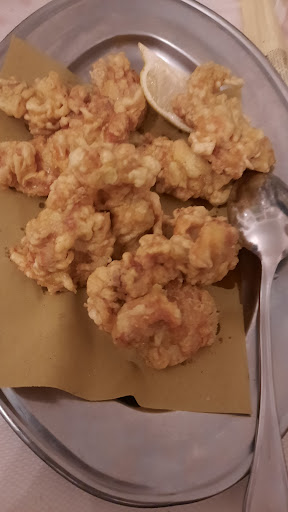 Read moreAmbiente al piano superiore vetusto , cibo: Crostini di fegato serviti su pane mollicone, fritto di pollo e coniglio buono soprattutto perché i bocconcini erano disossati ma poco saporiti considerato che fritta è buono qualsiasi cosa , i dolci: croccantino ( semifreddo) al caffè servito surgelato che ha all'istante freddato anche il caffè , crema di yogurt con frutti di bosco surgelati . Prezzi di livello superiore .