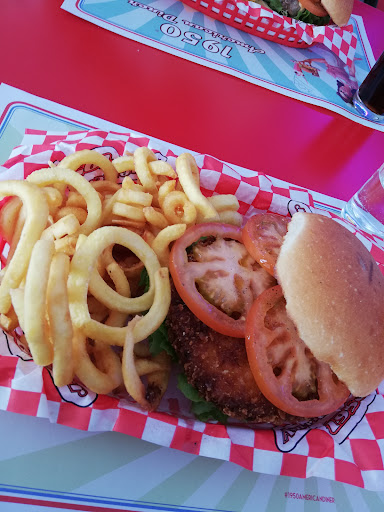 Read moreThis adorable place is so perfectly on theme, I think it beats just about every 50's diner I've ever been to in the States. Waitresses are on roller skates, even though there's no drive-up here, but it's fun (for diners; maybe less so for the servers themselves). Soundtrack is a perfect assortment of early rock 'n' roll classics. The menu is many pages long. You can satisfy just about any US food craving from burgers to doughnuts to hot dogs to milkshakes. I had a tasty salad with tomato, avocado, and mozzarella - a clever interpretation of how a diner might attempt an Italian salad. Our party of 4 would have happily returned for another meal. This is not haute cuisine, but it is...