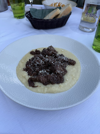 Passiamo ai piatti. Crostini misti con l’originale tocco della mediocrità più assoluta (la fetta di pane con l'olio ne è l'emblema), ad eccezione di quello al baccalà mantecato: un vero capolavoro… nel far schifo. Una crema di latte travestita da pesce. Pici all’aglione? Un piatto che definire “meh” sarebbe già generoso. Ma il pezzo forte è arrivato con il galletto al mattone. Ah, il galletto! Servito su una mini bistecchiera fredda (che fantasia!), bruciato fuori e talmente stracotto dentro che sembrava essersi reincarnato in una suola di scarpa. Non commestibile. E tutto questo splendore alla modica cifra di 21 euro. Un affare, se odiate voi stessi e i vostri denti.
