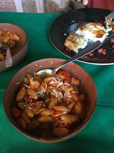 Read moreLocale accogliente, personale gentile e prezzi giusti, visitato Venerdì 14 settembre 2018 a cena. L'antipasto della bottega presenta sette o otto assaggi, tutti con sorprendenti equilibri di sapori tra melanzane, funghi, uova, formaggi, pancetta, erbe aromatiche e suggestioni di tartufo. Da gustare con cura, è un piatto da meditazione. Ottimi anche i paccheri al datterino e provola, anche se l'equilibrio di sapori era un po' sbilanciato a causa del gusto deciso del formaggio. Spettacolare la tagliata di frutta, di stagione e apparentemente di provenienza locale. Un calice di falanghina ha accompagnato il tutto. Inaspettato ma graditissimo l'omaggio di assaggi di focacce e pizza prima dei piatti ordinati. Una cena veramente piacevole in un ambiente...