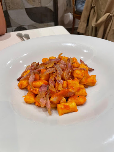 Read moreLocale intimo e familiare, ma al contempo sobriamente elegante. Silvia, la padrone di casa, e lo chef Fabio, il marito, si sono dimostrati persone accoglienti e professionali sin dalla telefonata di prenotazione (locale pieno, ma ci hanno addirittura richiamato loro appena si è liberato un tavolo per due). Primi strepitosi (tagliatelle con papera e porcini e tonnarelli alla carbonara in cialda), stinco che non necessitava di coltello, cicoria ripassata buonissima; discreta scelta di vini sia del territorio che no, e dolci strepitosi, come la pera al vino con gelato o la millefoglie montata al momento. Che dire: da ritornarci...e infatti lo abbiamo fatto subito, la sera dopo per il nostro anniversario. Senza alcuna richiesta, Silvia ci ha riservato il tavolo a due più bello del locale. Come la prima sera ha anticipato le nostre scelte, grazie ad un'ottima capacità di "leggere" i clienti. Una bottiglia di cesanese superiore ha accompagnato la nostra spettacolare Tomahawk dal gusto sublime. A fine pasto Silvia ci ha sorpresi, omaggiandoci del dolce, con tanto di decorazione luminosa a forma di cuore. Da non dimenticare la collaboratrice di sala, simpatica e professionale e l'eleganza di tutto lo staff di essere presenti, ma mai invadenti. Eletto tra i nostri...