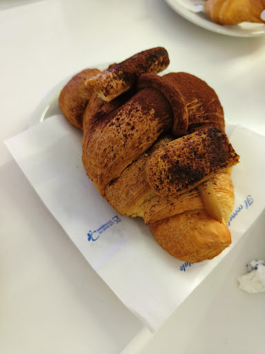 Acclamata da molti per uno dei posti in cui vengono fatto i migliori cornetti della costa (molti folli a quanto pare), in quanto prendendo sia cornetti da mangiare sul posto che d'asporto devo dire che sono rimasto molto deluso ed anche incazzato. I cornetti mangiati lì, erano nel complesso decenti, consiglio quello al limoncello mentre quello al tiramisù bocciato (vedere prime due foto). Servizio ok, con un po' d'insistenza per le mola di gente presente si riesce a farsi servire, anche se devo dire che mi hanno sbagliato il primo cornetto portandomene uno al pistacchio (che assaggiandolo all'insaputa era molto buono, infatti ne chiederò successivamante uno d'asporto). Al momento del pagamento del conto del tavolo chiedo anche un vassoio da portare via (essendo la mattina successiva l'onomastico di mia madre=un'occasione per fare un piccolo pensiero) con 5 cornetti (1 pistacchio, 1 black and White, 1 Nutella, 1 nocciola, 1 limoncello). La mattina seguente vengo a scoprire che di questi cornetti quello al pistacchio non c'era ma al suo posto c'era un cornetto vuoto, il cornetto alla Nutella era anch'esso vuoto ma con un po' di cioccolata sciolta alla base di quest'ultimo magari per la vicinanza a quelli veramente con la Nutella, quello black and White e nocciola avevano uno sputo di crema al loro interno, l'unico valido era quello al limoncello (quindi al mio risveglio mi sono molto arrabbiato per aver fatto una "brutta figura" in famiglia) Aggiungo che i cornetti sono stati presi alle 3:49 di notte vedere scontrino e mangiati 6 ore dopo, la brioche era completamente secche e sfatta, non mantenendo la freschezza che un prodotto artigianale deve mantere a poche ore di distanza. Nota dolente è il prezzo 2,30€ per quello vuoto, 2,50€ per quelli farciti ai gusti classici, 4€ per quelli speciali, una sola parola SCANDALOSI è sono stato molto buono, non si possono fare pagare così tanto questo tipo di prodotto, essendoci posti più validi che li fanno...