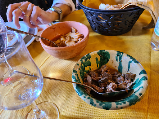 Read moreRitorno al passato... Era sera quindi non siamo riusciti a vedere tutta la struttura anche perché scarsamente illuminata. In aperta campagna dove non c'è più niente, c'è questo agriturismo abbastanza fatiscente come struttura con tavoli e sedie rimediate, arredamento sconcertante di vari tipi, commensali gentilissimi e genuini, sembra come quando vai a trovare la nonna al paese e ti siedi dove capita e mangi quello c'è. Una atmosfera casareccia quasi surreale che non trovi da tempo con un fondo di musica di ogni genere mista ad un karaoke dei peggiori mai sentiti. Ci sediamo e praticamente non c'è una carta ti portano un antipasto immenso con salumi formaggi ricotta trippa bruschette e varie verdure cotte al forno, essendo serata pizza poi abbiamo preso quella. Tutto buono e soprattutto fatto in casa. Lo Consiglio per il mangiare Lo Consiglio per far capire a molte persone che basta poco e forse niente per stare bene. Lo Consiglio come esperienza Lo Consiglio per il prezzo che non dico perché è surreale anche quello. Lo Consiglio e ci...
