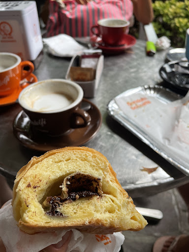 Read moreHo fatto colazione qui questa mattina prima di recarmi in spiaggia. Cornetti gommosi, con poco ripieno all’interno … tutta mollica. Cappuccino nella norma. Ci siamo sedute ad un tavolo dove erano stati dei clienti precedenti, abbiamo dovuto chiamare la cameriera più volte per farci sparecchiare e prendere la comanda. Quando è venuta a sparecchiare e a prendere l’ordine non ha neanche dato una pulita al tavolo. Cucchiaino sporco, come si può vedere dalla foto. Il costo per un cornetto e un cappuccino al tavolo è di 4,20 euro. Prezzo alto considerato il basso livello del servizio e la pessima qualità dei cornetti. Aggiungo che non ci hanno neppure portato dei bicchieri d’acqua che in genere sono inclusi nel servizio al tavolo. Bagno...