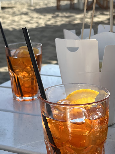 Alle 18 di un lunedì di Luglio 2025 c’erano moltissimi posti liberi e moltissimo personale. Nonostante questo è stato comunque necessario inseguire qualcuno per chiedere se si poteva prendere un posto qualunque e come funzionava per l’ordinazione. Non è stato facile perché praticamente per l’aperitivo ti puoi mettere dove vuoi, MA: i posti all’ombra sono ovviamente quelli sotto gli ombrelloni e NON hanno servizio al tavolo. Quelli con il servizio al tavolo sono al sole e non si capisce bene quali siano dalle indicazioni che ci hanno dato, lo abbiamo capito dopo noi. Da sapere che però i posti sotto gli ombrelloni andranno liberati presto per far spazio a chi dovrà accomodarsi per la cena. Ovviamente questo ce l’hanno detto dopo 20 min che eravamo già seduti. Ci spostiamo quindi in un tavolo al sole dove ovviamente nessuno arriva per prendere l’ordinazione, ma poco importa: andiamo al bancone a ordinare.
