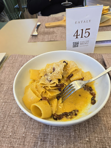 But the food was disappointing, to say the least. For an Eataly, specially in comparison to London. I ordered a Carbonara, and it barely had any heat. It was room temperature. I asked for it to be re-made, and it returned equally as neutral in temperature. Though the first plate, this being the actual plate itself, was hotter.