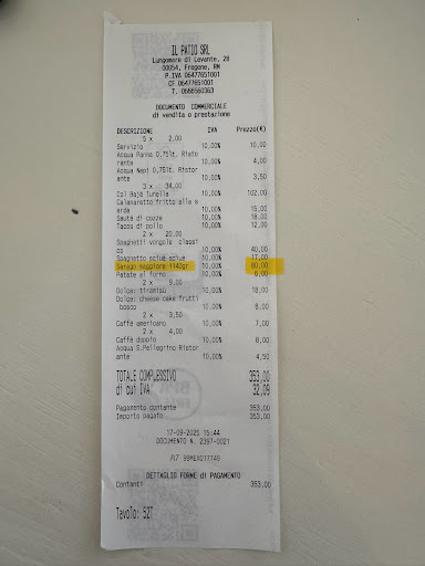 Atmosphere & Place 6: Considering the low season, the place was well organised and ready to welcome the guests. The table and the tablecloth make a difference, and at Il Patio, this is vastly underestimated. Bathrooms were not provided with hand sanitisers and when we arrived, around 12.30, they were already dirty. Menu 3: With all the Mediterranean cuisine options, I consider it not acceptable for a restaurant to offer only a specific menu type. In this case, only fish and seafood. The only option I had at my disposal was a plate of spaghetti with fresh tomatoes and deep-fried aubergine sticks (very yummy!). Service 6 ½: The crew was friendly and professional and always ready to satisfy our requests, especially the needs of the little ones. We waited for too much for the second round of dishes; this is not acceptable since the restaurant was almost empty at that time. Bill 6: Il Patio is expensive as the other places...