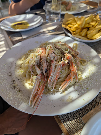 Read moreSi mangia molto bene, la qualità del cibo è buona e fanno degli accostamenti particolari che sono davvero gradevoli. Un antipasto, due primi, un secondo, una bottiglia di vino, due dolci...circa 120€ che per del pesce buono ci può stare. L'unica pecca sono stati i contorni, 7€ per tre foglioline messe in un ciotolone...tristi e deludenti. In merito ai primi, un piatto è arrivato abbondante mentre l'alto sembrava fosse mezza porzione, ma comunque buonissimi entrambi. (La cosa buona è che se si vuole provare più primi, fanno effettivamente le mezze porzioni...non era il mio caso però 😅) Anche il secondo è stato ottimo. Per quanto riguarda l'ambiente, se siete fortunati e pranzare nella veranda ok, ma se capitare nella sala dentro no...la sala è piccola e poco illuminata; le finestre tappezzate, più le tende tirate...insomma, se l'idea è il pranzo al mare in una bella giornata di sole, nella sala non si percepisce minimamente. Ci tornerò sicuramente, ma solo...