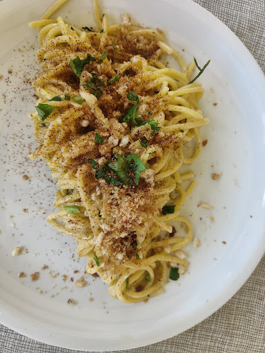 CIBO: tutto il cibo era fatto con materie di ottima qualità. Hanno delle specialità del giorno è quando sono andata avevano i totani freschissimi. Non hanno un menù dedicato per il senza glutine ma i proprietari sono stati gentilissimi nel propormi alternative senza glutine. Ho preso un primo (spaghetti) SENZA GLUTINE con vongole, totani, bottarga e lime che era veramente buonissimo!!!