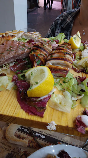 Read moreCerto, da un posto con un nome del genere, e quindi presumibilmente indicato più per il pesce, non è che mi aspettassi una qualità del menù di carne eccelsa, ma, vi giuro, un antipasto di terra più scadente di quello che ho mangiato qui credo che nemmeno nelle peggiori bettole lo si possa trovare. Tralasciando il fatto che la foto mostrava una cosa e ci è stato presentato tutt'altro, il suddetto antipasto si componeva di: 6 bruschettine di pane probabilmente raffermo in quanto dure ma non croccanti, degli affettati di qualità medio-bassa, delle olive tagliate a rondelle fini giusto per renderne più complicata la fruizione e un formaggio, modello discount, che non mi capacito di come siano riusciti a metterlo su un tagliere senza vergognarsi. Costo di tale scempio? 25 euro assolutamente ingiustificati, nè per qualità, nè per quantità. Meglio (ma neanche troppo) il secondo, ma andiamo con ordine; innanzitutto ho apprezzato la varietà, dato che la grigliata mista presentava ben 4 tipologie diverse di carne (pollame, suina, bovina e ovina). In questo caso avevamo: degli arrosticini ottimi, una tagliata bovina discreta, un pollo tenerissimo, delle salsicce senza infamia e senza lode, e della carne suina inclassificabile in quanto composta letteralmente da solo grasso; il tutto servito con una montagna di patatine fritte non della migliore qualità. Non so, forse un giorno tornerò per provare il pesce, ma, per quanto riguarda la carne, per...