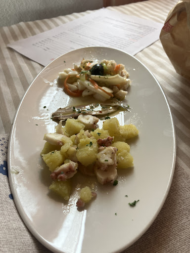 Partiamo con ordine: Ordinati due antipasti di mare, caldi e freddi, ci è stata servita la stessa quantità di uno solo, comparato al tavolo di fianco che ne hanno ordinato uno, unica differenza: un piatto ad personam. I sapori non erano dei migliori: cozze gommose poi con 5 gusci vuoti, polpo anche quello gommoso, e il fresco purtroppo sembrava quello del barattolo del supermercato.
