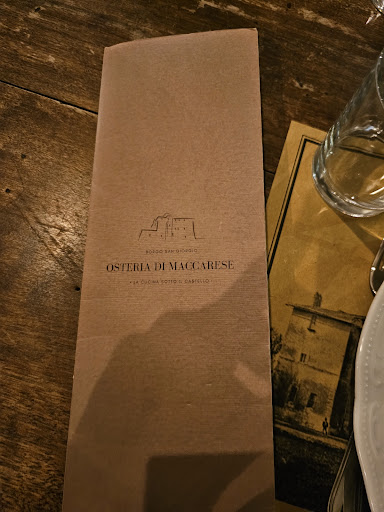 Osteria di Maccarese = Top Su questa equazione non è possibile discuterci sopra. Questo è un delizioso locale in un luogo meraviglioso fatto di natura, tantissima storia ed un meraviglioso casale. I sapori incredibili, ideati dal cuore e dall'anima del Patron Chef, si concretizzano in piatti più che speciali e fuori dall'ordinario come lo spaghetto affumicato con burro, Acciughe del Cantabrico, finocchietto selvatico e pane croccante, una carezza per l'anima. . La cottura ad arte, più che perfetta, si lega perfettamente con gli ingredienti di altissima qualità che lo chef utilizza con incredibile maestria. La degustazione di Prosciutti crudi è un qualcosa che non può essere descritto con le parole...dev'essere necessariamente provata. Impareggiabile la pappardella al cinghiale, mia carne preferita, connotata da un simposio perfetto di sapori e consistenze. Per lo chef la cucina è una vera e propria arte, è un viaggio attraverso la vista, l’olfatto e il gusto ma soprattutto attraverso i sentimenti e le emozioni che un cuoco, preparando i suoi piatti, può suscitare in coloro che li gustano. Tutto ciò rende non comune...un piatto comune. La cucina dell'Osteria di Maccarese è talento puro, è la riscoperta di una tradizione pura e verace, tutta italiana. Emozioni dell’anima sono state avvalorate dai sorrisi e dalla gentilezza infinita di tutto il personale di sala. Il servizio è connotato dall'alto livello dell'equipe tutta, persone meravigliose e dall'elevatissima professionalità. I piatti del menù sono caratterizzati da un bouquet e persistenza al palato di altissima qualità che in una parola si traduce in tradizione italiana. Un flusso continuo di sapori ed emozioni che iniziano dalla consistenza degli elementi utilizzati per poi sfociare nella perfezione dell'evoluzione al primo boccone. Due sono gli elementi predominanti: la tecnica di preparazione e le materie prime di eccelsa qualità. La tecnica è un'ampia e sapiente dimostrazione di conoscenza di cosa significhi il verbo “cucinare” per uno chef. Questo standard qualitativo permette al cliente di godere appieno dei sapori. Gli elementi secondari non vengono mai posti a coprire l'elemento principale del piatto ma lo accompagnano, sempre, in modo da permettere al palato di distinguere i sapori uno dall'altro. Gli ingredienti si rivelano decisivi nell'esaltare i sapori che, in bocca, appaiono netti, corposi ma allo stesso tempo delicati e persistenti. Ricchezza, sapiditá, dolcezza, croccantezza. Questo è il feel rouge di qualsiasi piatto si posi sulla tavola. Vino egregio e perfetto per le pietanze scelte. Corposo e profondo ma allo stesso tempo fresco, con profumi che riportano al legno antico e con un più che equilibrato grado alcolico che si lega in armonia con i sapori della carne e del pomodoro, esaltandone i sapori in entrata e al fin di bocca. La mise en place è lineare, elegante, fatta di colori pastello che si abbinano perfettamente al contesto in cui si trova il locale. Osteria di Maccarese è un luogo dove il tempo si ferma e tutto diviene un sogno che si realizza. La qualità dei prodotti è probabilmente una delle migliori che abbia mai sperimentato. Qualsiasi cosa è IMPECCABILE e scoprirete che vi sono dettagli unici che non troverete in nessun altro luogo. Vorrei poter trasportare questo luogo in ogni dove, insieme a coloro che ne fanno parte, per rendere ogni istante unico e meraviglioso. Senza dubbio il massimo che si possa desiderare ed andrà sempre ben oltre le migliori aspettative possibili. Ecco perché il ringraziamento è per quel che sarà e per quel che è già stato. Grazie di cuore, a...