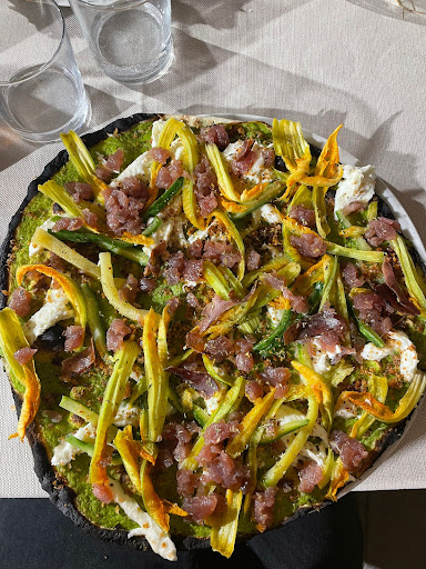 Read moreMossi dalla curiosità di provare queste pizzerie gourmet, siamo stati a Fiumicino con non poche aspettative. Tavolo per due. Presa la comanda seguendo l'ordine del menù, ma il danno era dietro l'angolo. Si partiva dai fritti con un supplì classicissimo, una sfera con guancia brasata, un fiore di zucca pastellato ripieno: il supplì dall'ottima panatura, sapore nella norma, senza infamia e senza lode. Ottima la sfera, gustosa. Il fiore di zucca dimenticabile, la pastella si staccava dal fiore come dei surgelati (e non sto insinuando che questi fritti siano confezionati, ma sto dicendo che non fosse realizzato a dovere) e il gelato al peperone di accompagnamento, una semplice (e di base senza chissà che sapore) crema di peperoni frullata e congelata per poi essere messa in una ciotola. Insieme ai 3 fritti, in ordine sparso, arrivano i prodotti del microforno: il pane di Luca Pezzetta, una fetta di buon pane con pomodoro e alici marinate, nella norma. Croissant con gamberi e salsa rosa, troppa la salsa rosa ma ottimo lo sfogliato. "Panettone ai fichi e prosciutto", da rivedere il menù che potrebbe fraintendere lasciando capire che i fichi fossero freschi, invece erano nell'impasto, ma questo può capitare e il prodotto era di altissimo livello (il panettone s'intende), il crudo alla piastra adagiato sopra, nella norma. A "concludere" il pan suisse al vitello tonnato, unto e bisunto (al morso trasudava), stracolmo di salsa e dal sapore dimenticabile (anzi la salsa obnubilava qualsiasi sapore). 25 minuti dopo aver ordinato il mondo e tenendo conto che gli "starter" erano arrivati in ordine sparso e non certo tutti insieme, a soli pochi minuti dall'ultimo arrivato (il pan suisse) arrivano le due pizze. Prima di venire ad esse, nota deplorevole. 3 fritti, 4 prodotti del microforno, spazio sul tavolo da due ridotto all'osso, bottiglie di coca-cola vuote non ritirate, c'era bisogno di mandare le due pizze? Non si può ragionare sul numero di starter prima di fare le pizze? Passiamo ora al lato gustativo: capricciosa di mare, pizza dell'anno 2023. Stracolma di ingredienti, sapore dimenticabile, l'acidità e la sapidità erano le note dominanti. E l'altra pizza, la vera delusione: Vita, tartare di pescato del giorno (non specificato, ma ovviamente mea culpa anche per non aver chiesto), crema di zucchine, zucchine marinate, fiori di zucca, bufala, bottarga e mollica atturrata. Partiamo dai pezzettoni di bufala, dalla bottarga praticamente non percepita, finiamo alle vere note dolenti: un'infinità di pesce, mal dosato, si costa 20€ ma la pagavo volentieri allo stesso prezzo anche con due terzi di pesce in meno, finendo alle zucchine che sapevano solo di marinatura e coprivano qualsiasi altro sapore sulla pizza, rendendola immangiabile sia per sapore che per quantità. Pizza peggiore della mia vita. Dolci buoni, maritozzo (al solito il microforno lavora bene) con la panna, e gelato alla crema. Al momento di pagare facciamo presente alla ragazza in cassa il problema di aver avuto solo 25 minuti tra l'ordinazione e l'arrivo delle pizze, nonostante avessimo ordinato tanti starter (evitando ovviamente giudizi di gusto). Risposta "eh noi abbiamo 55 minuti di permanenza". Certo, peccato che al tavolo eravamo rimasti 2 ore e 10 minuti senza che servisse per rimpiazzarlo e andando verso fine serata non c'erano stati nemmeno grossi ricambi e troppi nuovi arrivi, di martedì sera. Vogliamo davvero credere che non si potesse rallentare l'arrivo delle pizze per darci tempo di finire gli starter? Esperienza dimenticabile, o forse no, perché è difficile...