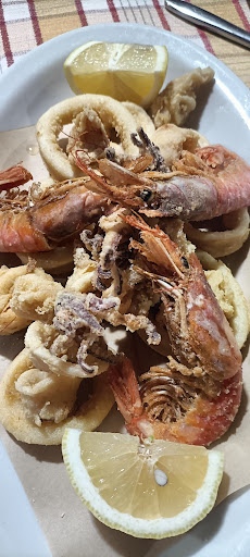 Read moreConosciuto tramite FACEBOOK siamo andati a pranzo (4persone) il ristorante offre 2 menù, uno di carne (20€) e uno di pesce (25€) a prescindere da quanti si è a tavola tutti devono prendere lo stesso menù. Come antipasto ci sono arrivati due bruschette condite con vongoline, soutè di cozze, baccalà fritto con pastella ,buono frittura leggera,una piccola mouse, mentre come primi risotto crema di scampi e paccheri con sugo marinaro buono anche questo,calano le tenebre per aspettare i secondi abbiamo aspettato 45 minuti.....il propietario si è giustamente scusato per un loro errore...arrivano i secondi un pò scarsi come quantità ma buona qualita', era un mezzo pesce per coppia con un gamberone (ottimo) più due anelli fritti per uno più tre spicchi di patate arroste. Come dessert un tiramisù e 3 sorbetti serviti su dei bicchierini da caffè. Il vino buono alla spina frizzantino e acqua minerale. Tutto sommato per 25 euro non mi lamento ,aggiungerei solo una piccolissima quantità in più e sicuramente lo voterei come molto...