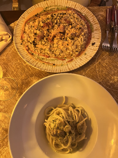 Delicious dinner in a tastefully decorated restaurant. Service was excellent with help & explanation from the chef about the Italian Menu. There dishes were innovative and seasonal, all made with local ingredients. We had squid and fishballs for an appetiser followed by Spaghetti Vongole and spaghetti with a seafood bouillabaisse sauce finished off with raw red shrimps. Delicious. The deserts were scrumptious 😋 - Lemon tart topped with seasonal berries and a terrific tiramisu....