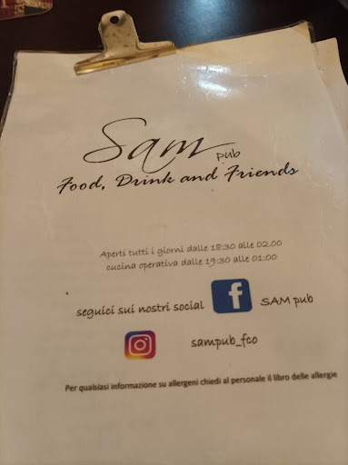 Da quando un anno fa hanno aperto, questi ragazzi si sono evoluti non solo a livello ristorativo, non solo a livello di mixology, non solo nel servizio, hanno evoluto il loro modo di essere, di pensare, di vedere le cose, di cercare di attrarre clienti nell'unico modo intelligente possibile... Dando lustro alla materia prima, alla qualità del beverage, agli accostamenti sfiziosi da intenditore, che difficilmente troverete in un altro pub... Insomma hanno evoluto spirito. Sono onorato di aver conosciuto lo staff del Sam, sono felice di fare parte di qualcosa di speciale, ogni volta che mi siedo al loro tavolo, mi rendo conto di trovarmi a contatto con persone speciali, che non ti trattano da cliente, non ti servono come distacco, ti fanno sentire vicino, ti fanno sentire... Umano... Di questo ultimo periodo un po' di umanità servirebbe a tutti. Venite al Sam... Vi mostreranno loro...