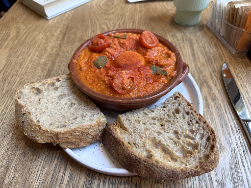 Read moreWe really enjoyed the food and coffee here. We tried their Shakshuka - it was amazing. The bread that comes with it was wonderful. Super tasty and very filling. Service was very slow, over 30mins - but worth the wait. Inside dining area was really lovely. 2 euro cover charge per person and they still had the hide to ask for a tip, even with the slow...