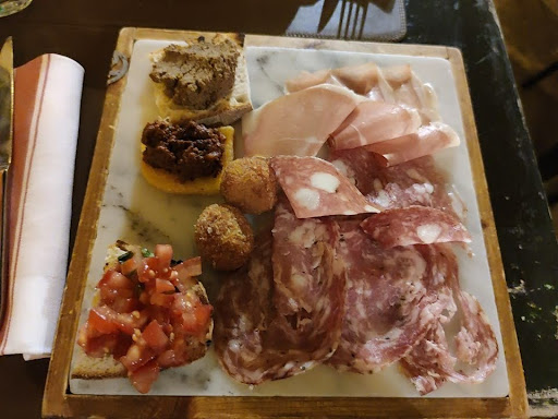 We're a group of 16 Christian pilgrimage from US. Visited this place for lunch as our travel agency set up. We had 3 course lunch, consisted of Spaghetti alla Carbonara, Fiorentina 250g/person, Patate fritte, and Tiramisu for 40 euros per person. Everything went well except their service. The server threw away the dishes instead of serving person by person. However, we're understanding considering the size of our group and this relatively small space. When the desert was being served, we're given small orange, one for person. We waited and waited tiramisu. Finally, tiramisu served and one member asked for a spoon. A server with well groomed mustache answered with attitude, "Hey, I only have two hands!" Then, I decided to speak with the management about this improper service. I looked for the owner or manager. The mustache guy was found and I tried to take a picture of him, thinking putting his photo on Google. When I did he grabbed my hand snatched away my phone. My phone was in his hand. THE MUSTACHE GUY IS THE OWNER OF THE PLACE, Massimo Bocchetti. If this happened in the US, he would get caught for assault.