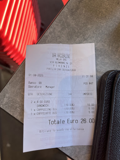 Read moreWell i was about to give a 5 star but i was totally astonished by other comments... I didn't order something that would reflect the unreasonable prices. Just one Hugo, at least it looked fancy and the taste was right. Compared to other places where one average cocktail costs like 7/8 euro, 10 euro here ain't much of inflation. There are definitely more garnishes added in, it's just beside the railway station, and bartenders even send you the order to your seat. But after I saw other comments I realized, that the reason I got a relatively fair price was because I'm no tourist and I speak Italian, though I'm...