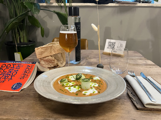 All'interno di Manifattura tabacchi si snoda questo piccolo Bistrot che strizza l'occhio a al gourmet proponendo dei buoni piatti da accostamenti interessanti . La location non ha eguali peccato per i tavoli un po' piccoli e il gran freddo che purtroppo attanaglia la zona che è adiacente all'ingresso 🙃. Accolti in maniera solare ma discreta noto con stupore che la scelta dei crostini è bella ampia e che nella cucina(a vista) c'è fermento nonostante i pochissimi clienti della serata.🙃🙄 Purtroppo leggendo con più attenzione il menù mi rendo conto che vira soprattutto in direzione "Ciccia" e Pesce. Piatti vegetariani o vegani quasi completamente assenti...faccio notare questo dettaglio per dare un feedback su cui lavorare in prospettiva ma aimé viene sottovalutata la mia visone e con non troppo "garbo" mi viene indicato che invece ce ne sono abbastanza ! E che anche il pesce potrebbe fare al caso nostro oltre alla zuppa e al tortino di Ricotta 🙃 🙄. La delusione è solo parziale poiché ci accomodiamo cmq per gustare delle ottime birre artigianali e accompagnare il tutto da gli ottimi crostini sopracitati semplici ma efficaci... Spero di trovare una proposta alternativa poiché mi piacerebbe ritornare più volte essendo anche un abitue della manifattura ...Grazie per la disponibilità dei crostini di polenta senza 🎏. Da...