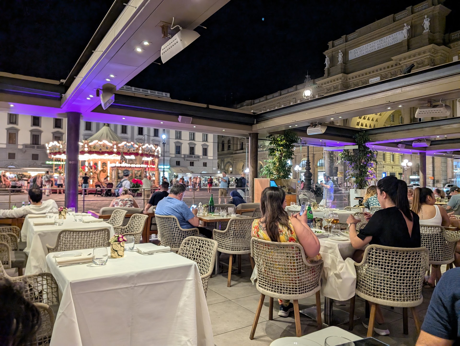 Atmosphere**: The ambiance of Caffè Gilli is a perfect blend of old-world luxury and contemporary sophistication. With its chandeliers, mirrors, and marble accents, the café has a timeless elegance that transports visitors back to early 20th-century Florence. It's a great spot for people-watching, as it’s located in Piazza della Repubblica, a bustling area with plenty of foot traffic.
