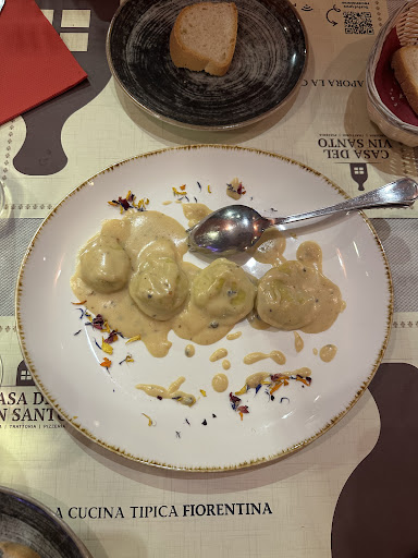 When I was in Florence, I stumbled upon this restaurant after spotting truffles on the menu!as a huge truffle fan I couldnât resist. There were free tables so I didnât have to wait. hereâs what I ordered on pics below. I decided to try the Tuscan soup out of curiosity but honestly it wasnât to my taste. The restaurant prepared it well, but itâs quite different from the soups weâre used to(yeah I kno thatâs the idea)So, if youâre expecting a classic soup, Iâd probably skip this one. No criticism of the restaurant though. itâs just not a dish I personally enjoyed. The tiramisu was rather good. not the best Iâve had in Italy but still very decent. The real star was the truffle pasta. It was absolutely outstanding. Sadly in Italy you sometimes come across pasta thatâs a bit underwhelming and as someone whoâs tried it in many cities across the country, I can say this place really knows how to do it properly. If you want to enjoy excellent truffle pasta, this is the place to come. On the downside, the toilets were disappointing. The room was tiny, with a baby changing table awkwardly blocking the way, so you had to squeeze past it to reach the loo. There was nowhere to put a bag, and the light kept switching off every few seconds, which was frankly ridiculous. I also felt the staff could have been a bit more attentive â I had to look for someone to continue my service. And the guy who served me didnât speak English wellâŠI know itâs not a must but it is a touristy area. When I asked a waiter what Italian beers they had hoping to try something local he replied, âWe have Fanta,â which was baffling. I didnât bother ordering a drink after that. despite these small issues Iâd definitely recommend this restaurant, especially for the truffle pasta!it was...