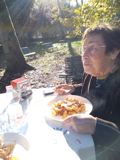 era + di un anno che non vedevo un amico e ci siamo fatti il giro delle cascine a piedi nel bosco parlando di tutto di musica e non solo alla fine ci siam fermati a mangiare a questo chiosco che conosco e apprezzo da anni per gentilezza e per quel che vendono io ho preso un primo ottimo mezze maniche al sugo di carne ottime davvero cotoletta e patate ottima caffè e cioccolatino all'amaro del capo il mio amico una bella schiacciata al prosciutto crudo (ottima mi dice lui) un gelato sammontana confezionato e 2 caffè spesa totale 24 euro in un tavolo in mezzo alla natura siamo...
