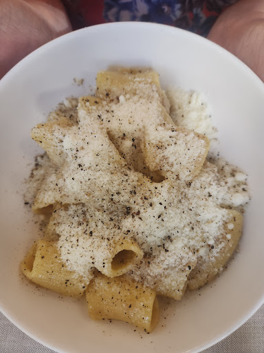 Simply the best homemade pasts in the area. My wife and I had lunch. Staff was friendly, multilingual. I had what I would have called carbonara minus the egg and it was fabulous. I lopped up any remnants of the sauce with whatever bread was on the table. My wife had a pasta dish with onions that must have been sweated for HOURS and pecorino, again fabulous. Desserts were perfect, fresh not overly sweet. I had the dessert that was like creme burle minus the torched sugar. My wife had the no-bake chessecake and declared it perfect. (Quite the declaration from a baker) My only criticism would be that the wine should be elevated. They are basically serving box wine (which in Italy isn't necessarily poor), but my Sangiovese was lacking for my taste buds. We are here for the next 3 weeks and plan and having lunch MANY more times....