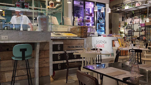 Nice place. Good food. Honestly i did not try the most significative dishes, because the price looked to high compared to my intentions. Well, the place is nice. The style and the furniture are following the new style of many modern places like Vivo, Eataly, Rossopomodoro, etc., combining the sense of clean, with the simple and country style. Very nice view when you go around the place, because you can see the chefs preparing food in front of you. Everything is exposed but, at same time, repared behind a shop windows. You can also see the enormous barbecue on a side of the restaurant. I had a pizza and one hamburger. Both good. At the entrance, waiters brought a nice flute of white wine, as a welcoming drink. Nice idea. Actually the taste was a little bit without personality. Even if well prepared, closing my eyes i could not say what was the origin of the taste. Even if outside seems like a "simple" pizzeria, inside it is not. Prices are quite high, if you want to pass to the main menu. A first dish is always around 13-14 euros and the second is higher. But it is possible to find your stomach staisfaction without spending too much, anyway. Strategically located inside the mall in Novoli, near to other shops of big chains, it looks a very smart place, corresponding to a modern elegance concept and a valid choice. Ok. It is comprehensible since there are at least 10 people working. The coffee, Kimbo quality, is very good. Bathroom...