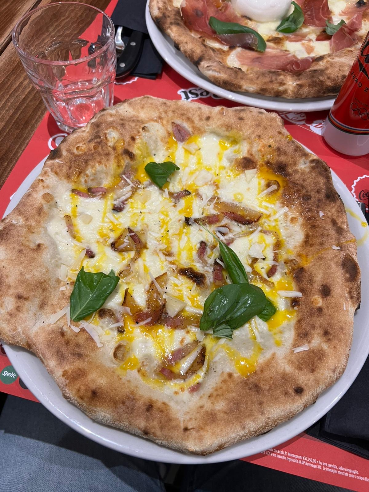 Read moreSiamo stati in questa pizzeria tantissime volte e ormai è diventata la mia preferita! Le pizze sono davvero eccezionali, in particolare la crudo e burrata, che prendo sempre e non delude mai: impasto perfetto, ingredienti freschissimi e ben condite (la burrata è intera😍😍) Il personale è sempre gentilissimo e attento, sia quando si cena nel locale sia quando si ordina da asporto. Le pizze arrivano sempre in pochissimo tempo, mai un ritardo o un’attesa di troppo. Anche i dolci meritano una menzione speciale: la pastiera è una porzione generosa e davvero buonissima, proprio come quella fatta in casa. Un posto che consiglio davvero a chi cerca la vera pizza napoletana e un servizio impeccabile. (nella foto è la pizza carbonara, buonissima...