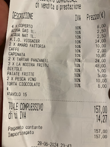 Buone le proposte dei piatti, prevalentemente a base di terra, con qualche piatto vegetariano. Abbiamo ordinato 2 contorni, 2 primi piatti e 2 dolci, tutto accompagnato con un vino rosè della costa livornese. Piatti ben riusciti e gustosi. Selezioni di vini buona, abbastanza amplia e variegata, su quasi tutte le tipologie, anche se a mio avviso c'è un buon ricarico economico su certe etichette di medio livello. Prezzi nella norma. In tutto pagato sugli 80 eu. Servizio buono e puntuale. Da riprovare, magari per...