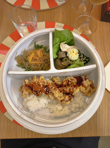 Read moreHo mangiato qui perché amante della cucina giapponese, e non potevo fare scelta più azzeccata: sembra di trovarsi davvero in oriente. Le pietanze comprendono poche ma appetitose varianti del famoso bento, piatto completo a base di riso che in Giappone è tipicamente consumato al volo ma che qui è servito su un raffinato servizio di porcellana. Scelte per tutti, anche vegetariane, tante opzioni di vini che non si trovano tutti i giorni e dolce buonissimo palesemente fatto in casa, nel mio caso una panna cotta con crema di pera. C'è poco posto, conviene prenotare, ma ho visto dei tavoli anche all'esterno per la bella stagione. La quantità poteva essere appena maggiore per il massimo dei voti, ma è anche colpa del fatto che ero appena uscito dalla palestra e in tali condizioni mangerei anche i...
