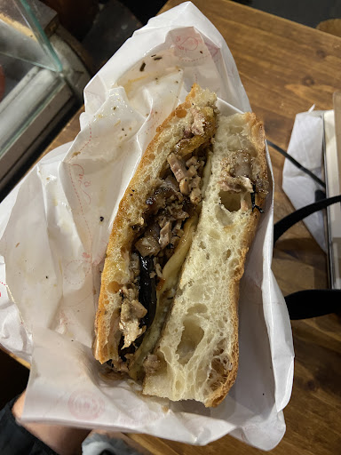 Read moreI will fight anyone who doesn't agree this is the best sandwich in Florence - we've tried 5 highly-reviewed places, and this dominates the competition (including the infamous one next door). It takes everything All'Antico Vinaio does well (tasty meats, good fillings) and does it 2x better. This place toasts up the fresh bread and then drowns it in meat. Seriously, watch the video I'm uploading. 7 euros per sandwich but this is worth it, and there's no 60-minute line to wade through. Fantastic service, mind-blowing sandwich. Get the Magnifico (if you like mushrooms) and the Claudiana (if you love onions and scamorza, a provolone-like cheese). We're coming back...