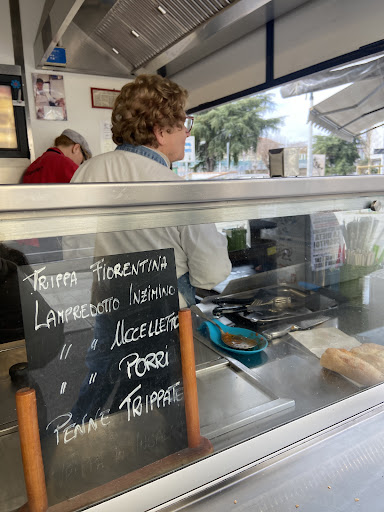 Premetto che questa è la terza volta in generale che vengo, e le prime due volte è andata da dio, con la signora che mi ha riempito il panino con sale qb, verde e poca mollica... Ma passiamo ad oggi che, mio malgrado, ho deciso di non andare a mangiare il Lampredotto da altre parti nonostante fossi dall'altra parte di Firenze quindi più comoda per altri baracchini, ma via, ho deciso che avrei mangiato proprio lì, perché per me il cibo è un'arte, quindi, mi aspettavo il meglio. Bene, arrivo e chiedo ad una ragazza che avrebbe voluto essere ovunque tranne che lì, se aveva ancora panebono, dice di sì, percui si ordina di panini, facendo presente che avevamo molta fame, percui, se fosse stato possibile, di mettercene, di lampredotto... Inutile dire che mentre faceva i du panini rimaneva per momenti a fissare la tramvia che passava facendo freddare il Lampredotto... Insomma la fo breve: Pane secco Un filo di lampredotto (ma proprio un filo) L'ho dovuta fermare sennò me lo inondava di piccante senza chiedere. (LE BASI proprio!!) Uno sputo di sale che non si semtiva quindi mi ha reso ancor più nervosa, e nemmeno in quello di mio Marito che ha ammesso che a sto giro non era condito il panino(e lui mangia sciapo la maggior parte delle volte, per dirvi) e, ovviamente, stando a guardare le farfalle che passavano col Lampredotto sul piano era OVVIAMENTE diventato freddo. 3.50 a panino e per me oggi era come un pranzo al ristorante dato che si more di fame un po' tutti nsomma... Mi dispiace... Ma non tornerò più... So che le altre due volte è andata bene... Ma a me i soldi a cavolo non li spendo più nemmeno a rischiare, dato che...