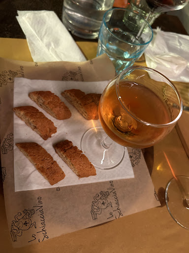 Everytime we pass this place in the evening, it is packed with people outside and inside. We finally tried it a few weeks back and we have been back 3 times now! They have delicious sandwiches in 3 different breads (even a gluten free option!!!) and you can either choose one of their recipes or you can build your own with 3 ingredients for 6 euros. Fantastic pricing and wonderful sandwiches! They also have a menu of the month available, but booking is needed for that. I've never tried it yet, but will! They even mentioned that they can arrange alternatives for vegetarian or gluten free dietary restrictions. They have an outside seating area as well as inside one. And an extra room in the back and basement for seating among the wine, super cool and local! The staff (and we had the pleasure to meet the owner too) have always been nice and friendly and they spoke English too, which made it easier if needed. Their menu is both in English and Italian. And their house wine is 10/10! Make sure to order a...