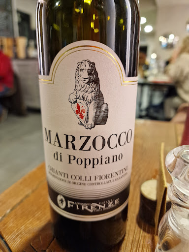 We saw this restaurant while walking around our hotel. It was full night before we came. Restaurant shares space with shop where they sell various freshly prepared dishes etc. Our waiter was very helpful and gave some useful recommendations regarding the meals and wines. We had few appetizers to taste and took three different main courses. For appetizers we had big plate with selection of local products (salami, mortadela, parma hama, cheeses), red onion with pecorino cheese, separate cheese selection and penne ala Chiantigiana from primi piatti. Our main courses were beef tagliata with rocket and grana, roasted turkey carpaccio and steak fiorentina style 200 g with truffles. As side dish we had house special potatoes. Waiter recommended us a red local wine Marzocco and it went very well with steak and tagliata. My wife prefers sweet wine and he recommended...