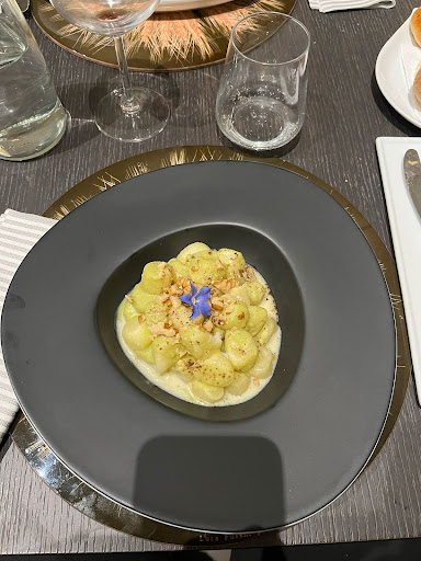 Prima ancora di ricevere gli antipasti, ci è stata offerta qualche pizzetta al pomodoro. Buona, calda e saporita. È stato molto apprezzato. Gli antipasti, divisi tra caldi e freddi, sono abbondanti per una singola persona, quindi meglio condividere la bontà dei piatti. Tra un olio eccezionale, il pane fatto da loro ( tra piccoli panini, pane arrostito e profumato con origano e schiacciata, tutto fatto da loro ), un crostino toscano delicato e leggero, e un piccolo panino stracchino e salsiccia che esplode in bocca, posso dire soltanto che era tutto buonissimo. Questo antipasto super completo lo considero un piccolo viaggio nella tradizione. Inoltre, per alcuni degli antipasti veniva aggiunto un fiore edibile che aggiungeva una nota colorata e un sentore al palato . Andando sui primi piatti, ho avuto modo di assaggiare sia gli gnocchi che un fuori menù del giorno, ravioli ricotta e spinaci conditi con una crema di formaggio blu. I ravioli avevano un’ottima consistenza e lo spessore della pasta era proporzionato al ripieno, ben fatto e molto gradevole. La crema di blu era adatta a quei ravioli, che venivano avvolti e coccolati da questo gusto erborinato. Per quanti riguarda gli gnocchi ho apprezzato la loro consistenza e leggerezza. Buona la crema di pecorino, necessaria ad ogni boccone, perché senza, lo gnocco mancava un po’ di sapore. Tutto sommato un piatto più che gradevole. Passando brevemente ai secondi, ho dato un piccolo assaggio all’ossobuco di maiale. Buono, ben cotto, delicato, e anche i contorni a fianco del piatto per niente male. Piatto ben riuscito.
