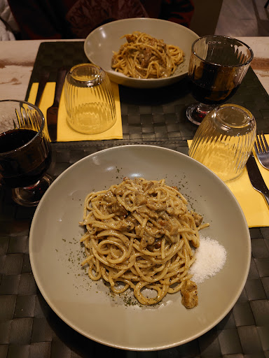 Read moreIf you go here get the carbonara with truffle!!! When we went it was €12 which is an amazing price for the amount of food you get! Me and my fiancé actually ordered 2 lots of carbonara as it was that good. And went back the next day to get the tagliatelle with truffle sauce. If you're a dessert person like me then I don't recommend the desserts here... They lacked flavor, the tiramisu just tastes like cream and soggy cake, chocolate and pear cake was bland and the same goes for the apple pie... Was also a little disappointed with the wait time, we were one of the first people in and got our mains and dessert pretty quickly but after that we tried to get the waiters attention as we wanted more carbonara and no one came to us... We waited 45 minutes before anyone noticed us. Also they give you bread at the start without asking if you want it... you pay €3 for it even if you...