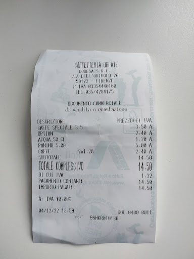 Ā Ā Ā Read moreWhen we entered, we saw that they had a letter outside the cafe with an offer (panini+water+coffee) and I asked for that offer. However, I realised that they charged me the items separetely. When I went to complain, they told me in a rude way that I had to say I wanted the offer before ordering, and I actually did it. In adittion, they charged me with an extra coffee and refused to give me a refund. My impression is that they wanted to charge me more because I did not speak Italian and they pretended not to speak English, when they...