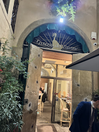 Our dinner at Osteria del Pavone was one of the best and truly delightful as I recall. We entered through the charming Osteria del Cinghiale Bianco & got to Osteria del Pavone. Since we didn’t have a reservation at Bianco restaurant the staff guided us thru to Pavone restaurant to a cozy spot at the bar counter. That was incredibly kind and accommodating. I guess they both belonged to the same owner as we were given menus from both the restaurants to order food. Both the restaurants had beautiful decor. One carried a traditional charm & the other a modern tone. We kicked off our meal with complimentary bread & olive oil. We ordered a refreshing Aperol Spritz and a glass of Chianti Classico. For starters, we dove into a creamy burrata topped with freshly shaved truffles and olive oil an intriguing combination of grilled crostini with toasted bread, anchovies, and a flavorful green paste & a sprinkle of olive oil. It was a unique and delicious combo to start with! For our main courses, we enjoyed a show-stopping dish, Chicken breast with pecorino and truffle & this dish was, without a doubt, the best and one of the highlight of our entire trip, & wife ordered wild boar ragu was equally satisfying. Both mains were perfectly complemented by two glasses of Bolgheri red wine. A special shout out to our bartender, who was not only knowledgeable about the menus and wine selections but also incredibly friendly and helpful, making our dinner experience even more enjoyable. We thoroughly savored every moment and every bite at Osteria del Pavone/ Osteria del Cinghiale Bianco. I highly recommend this bar & restaurant to anyone traveling...