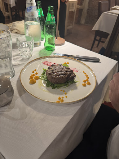 This was our first time in Florence, Italy, and we had an amazing experience with this restaurant! We found it by chance when it was raining, and it had a wonderful atmosphere! We loved the ambiance and decor, but the main selling point was the food! I had a steak, which I will admit I can’t remember exactly the name, but it had “ Filet atta aggregeli” I believe (Sorry, I don’t speak much Italian!), but it was AMAZING! Easily the best steak I’ve ever had, and the accompanying vegetables were great! For dessert, I had a pistachio tiramisu, which was homemade and very delicious! I also had a decafe coffee (Americano), and it was also the perfect strength for me and also is noteworthy as I’ve not seen decafe sold in a restaurant yet!