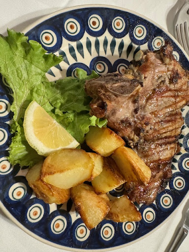 I got the house red wine (as I normally always get in Italy), which was an overly sweet Chianti, that I often get in the US and hate. Having come to Tuscany, I can now appreciate a good Chianti - this was not it. They have an extensive wine list on a chalk board - I recommend one of those over the house wine. I got the grilled pork with truffle sauce, which was good, but nothing memorable. It could have been a plain mushroom sauce and I would not have noticed the difference. Good, but no “wow” factor. I did not get a chance to see the other reviews first, so perhaps the ossi bucci, or peposo are much better. I also got the grilled vegetables, which I always get with every dinner. It was my least favorite version. I think they used a mandolin to slice the vegetables, because they were so thin and so very few of them. Flavor was OK. BTW, I never got any complimentary Prosecco as other reviewers have indicated they got. I also agree with other reviewers, the bread was ordinary and not hot/fresh.
