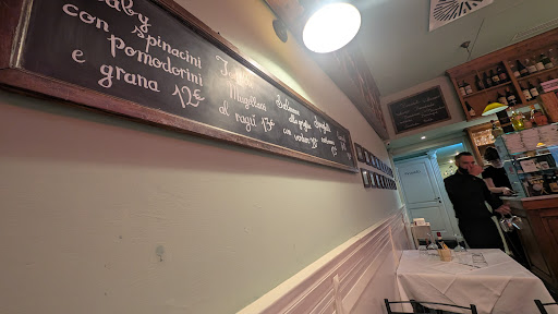 This was by far the best meal we had in Florence and the most fun experience. After being sent to a much more expensive restaurant our first night and being not only disappointed by the food, but turned off by the very rude waiter we had, we were told to go to another restaurant that was around the corner from this one. There was a very long line, so while my husband and granddaughter were standing in that line, I decided to investigate and went around the corner and found this hidden gem. They had one table left for 3 and I told them to save it and I was going to run grab my family from the line. I brought them back and we had the best meal of our trip. My husband loves lasagna and he deemed this the best he's ever had in his life. I ordered the wild boar. It was enough meat for 3 people and much more than I could eat. I was surprised at how tender it was. They make salads here, and I was missing salad, which I found hard to find on the menus, so that was wonderful. Their house wine was delicious and so affordable. The tiramisu very good. They have a waiter, Francesco, who is a big personality and we were lucky enough to get him the second time we went. It was our last night in Florence and my granddaughter wanted the lasagna she didn't get the first night. Francesco recognized us and greeted us with hugs, treated us like family, took a pictures with us and brought us lemoncello and a taste of grappa to end our evening. The grappa I dubbed "Italian moonshine"...too strong for me! But it was good for a laugh. This time my husband got the mushroom risotto, I got the eggplant and my granddaughter got the lasagna. All were good, but the lasagna rules! The prices were half of what they were in the tourist places and the food so much better and the service excellent. The young woman who had waited on us a couple of days before, took time to tell us out of the way places to go shop, flea markets, artsy places, nature places, and we had a wonderful time, avoided crowds and appreciated her telling us how to navigate the trains. This is the kind of place we will come back to every visit because the people feel like family. And we did go for lunch at the place next door that everyone said was so good and we did not like it nearly as much as this restaruant. It was not clean, was too crowded and the food was not nearly as good. So, this will be our go to...