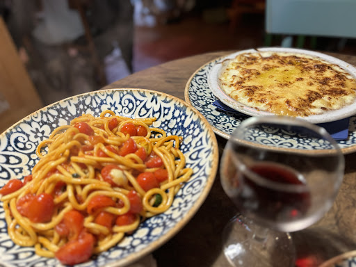 Read moreThis was the one meal I had by myself during my week in Florence, and yet this was my favorite meal. I ordered two large pastas, which paired well with the house wine. The pici with pomodoro was extraordinary. It came to me in a huge portion, piping hot with endless steam. I did not know such "simple" food could be so delicious. The truffle gnocchi came to me still broiling in its plate (and continued to bubble for a long time). It was rich and decadent. I had to stop myself from finishing all of the pici pomodoro so I could box it up and let my companion try it later. He (a meat eater who loves rich food) was so impressed by the simple vegetarian pasta, even as re-heated leftovers, and ate it all with gusto. The environment was perfectly rustic, Tuscan, warm, and beautiful. The service was so good and so fast! Shortly after sitting down they served complimentary bread with the best olive tapenade I've ever had. At the end, when I paid at the counter, they asked me if I would like a limoncello shot. Naturally I was confused, but they seemed to be saying that this was a normal thing offered to people who spend more than âŹ30. I asked the employee to take it with me, so together we toasted and took a delicious, very strong limoncello shot at 2 in the afternoon. I've eaten at quite a few places during my week in Florence; this was...