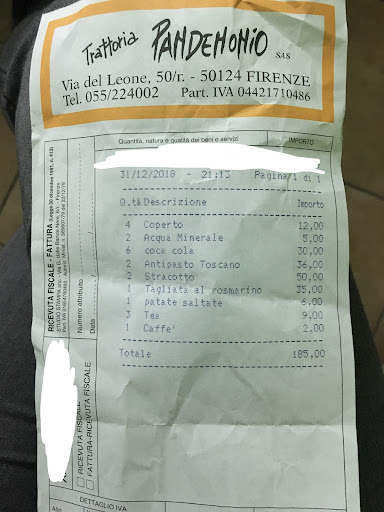 Thank you waitstaff and chef for ruining a once in a lifetime meal. I’ve waited for a VERY long time to have my first steak florentine and per a recommendation we came to Pandemonio. We ordered a 1 kilograms steak for the table as we were having several other courses as well. When they brought us out 2 lesser cuts equaling 2.2kg I asked why it was this way I was met with resistance as the “language barrier” appeared to be too much. When I finally was able to speak to our waiter regarding the misunderstanding he was very patronizing and rude. He said they decided that since the steak we ordered which contained BOTH HALVES of the T-bone(not just the NY strip) would have been 1.8 kilos they decided on our behalf that we should instead have 2.2 kilos of the lesser end of the roast that no longer contains the filet. Stupid Americans won’t know the difference anyway. They’re just lucky to be here. So! Somehow!? although we only ordered 1 kilo, the 1.8 kilo version of the steak we ordered would be too much so they felt it in our best interest to give is 2.2 kilos of an inferior cut. And get annoyed when we asked them to fix it. I didn’t come all the way to Italy to argue with some arrogant little waiter about the difference between a T-bone and a porterhouse and where on the roast they sit comparatively. Or, why .8 kilos of tenderloin does not in any way compare to a kilo of NY strip steak. In your mind I may be just some stupid American. And that’s fine by me. But I know my cuts of meat. And know when I’m being ripped off. I don’t mind paying 60€ per kilo for a steak. But if I am, I’d expect to get what I actually paid for. Not a lesser cut because some chef or waiter assumed we wouldn’t...