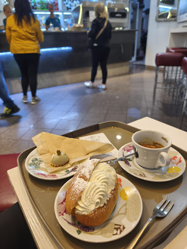 Read moreWent this morning spontaneously on my way to the airport because it was already crowded and cheering atmosphere among local people at 7 in the morning. Staff was super friendly and the atmosphere was great for a last Italian breakfast. Lot of sweet and savory options. Got a maritozzo con panna, a pistachio Praline and an espresso doppio and everything was very tasty. Nice cups and plates also :-) indoor and outdoor seating...