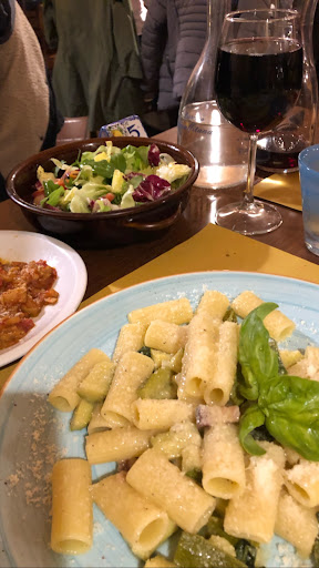 I cannot say anything about the food, cause left after a hour of waiting. We were first left waiting at the door for about 10 minutes till someone finally seated us. Not sure if it was a seat yourself restaurant but there were plenty of seats available, definitely wasn't busy. Then we sat at our table for about 50 minutes with just our menu, no water, no ciao, nothing...we waved them down twice, said excuse me (said it with our chest) and they never even looked at our table.... @.@ LOL We were very patient cause we know that restraunts in Italy takes their time and etc. However, this was the first experience where we were completely ignored. We were recommended by our Airbnb host about their fantastic food, however due to their terrible service we will give them a one star with no review on their food.