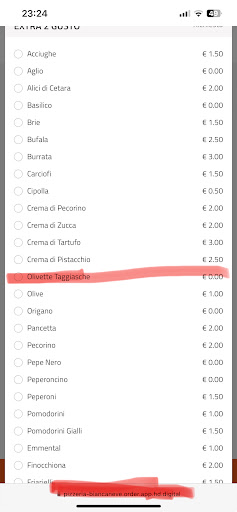 The online menu gives you the possibility to to add Olive Taggiasche FOR FREE, but the pizza arrives without them (it happened in the past) and they never apologize or explain.