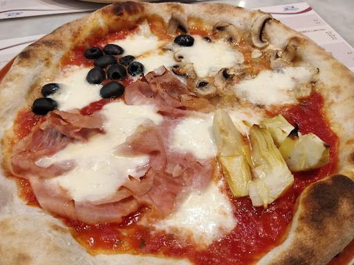 Read moreWe ordered the 4 staggione and the delicata. The 4 staggione was swimming in juices (from the canned artichokes?), making it one soggy puddle of diluted tomato water; olives were also generic canned ones that tasted like nothing. The delicata was anything but, oversauced and sun-dried tomatoes not chopped. The dough was lacking flavour, and the chewiness of crust as the pizza cooled down denotes over-kneading or subpar quality of flour. Quite a disappointment, but they don't charge a table fee; and we took consolation in having started our trip with some stellar pizza in...